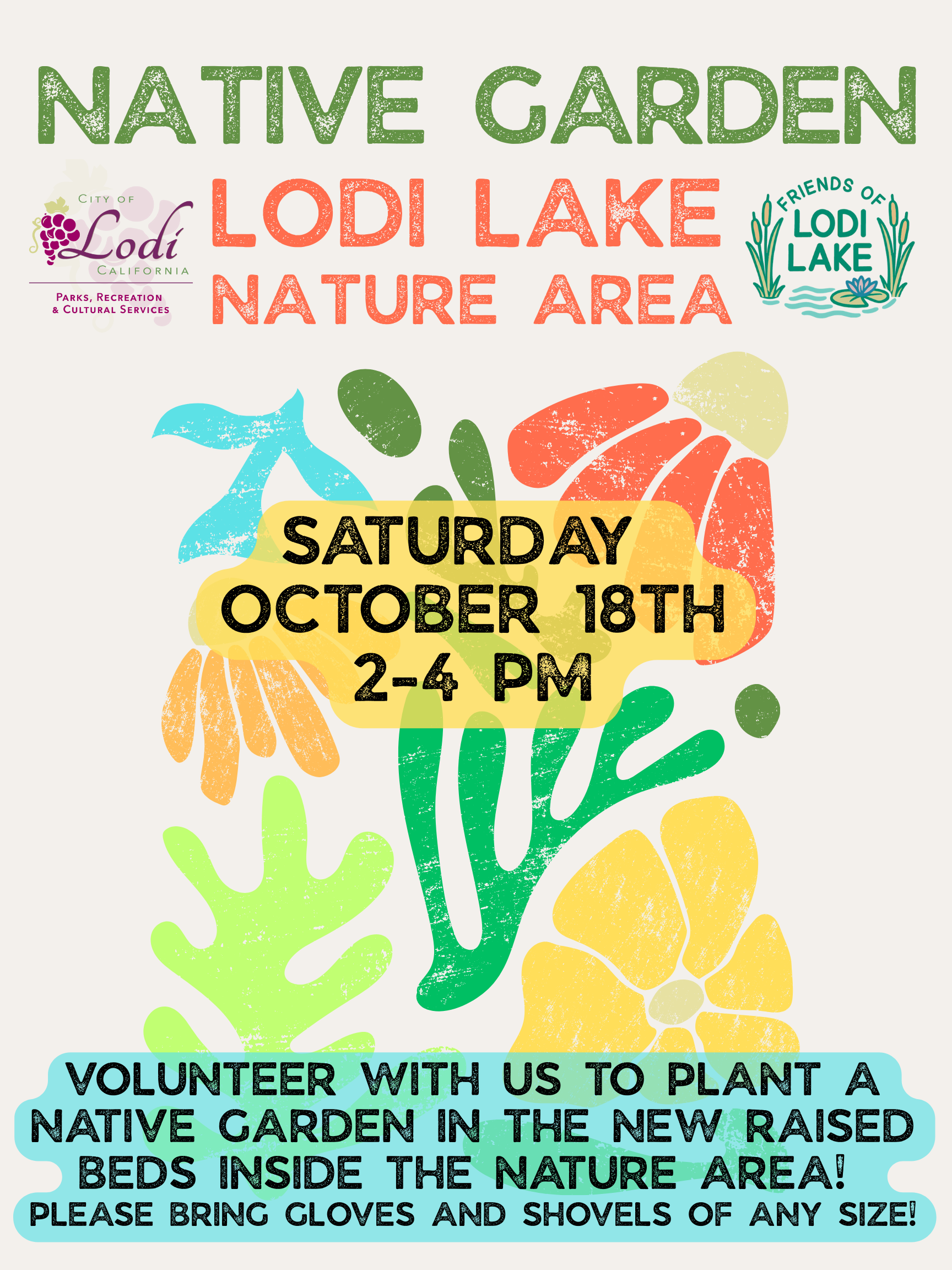 Please join Friends of Lodi Lake to help plant a new native plant garden on Saturday October 18th! We are looking for volunteers to help prep the soil, plant, label the natives, weed the pathways, and deer proof the area. If you have garden or work gloves please bring them along with shovels, big or small.